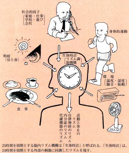 以上のような睡眠と覚醒に関する2つの機構、すなわち、睡眠の質に関連するレム睡眠とノンレム睡眠の機構と一日のリズムに関連する生物時計の機構は、密接な相互作用を持ちながら、夜には良い睡眠をもたらすと共に昼間には良い活動性を作り出すのです。