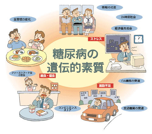 実は、こうした社会の変化が、我々日本人に大きな問題を投げかけているのです。それは、遺伝的、体質的に日本人は糖尿病をはじめとする生活習慣病になりやすい民族だということがわかったからです。