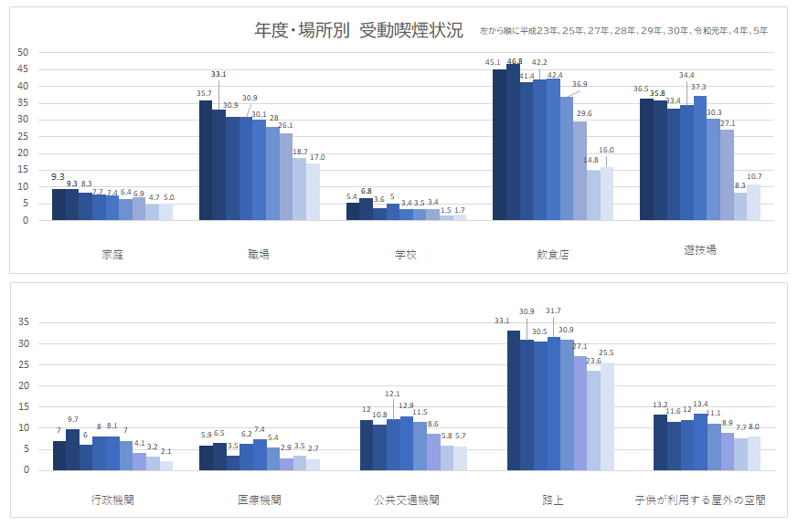 ※屋内・屋外等、受動喫煙が生じた場所や場面は不明。