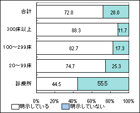 また、病院の規模が大きくなるほど明示している割合が高くなっている。