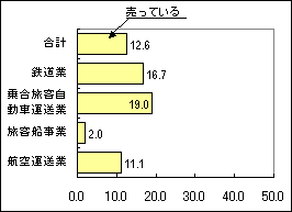 販売方法別では、「車両等」では旅客船事業が最も売っている割合が高く、「ホーム、乗車口、搭乗口等」では鉄道業でその割合が高い。さらに、「待合場所」ではすべての業種で売っている割合が高く、「旅客船事業」では4割を越えている。