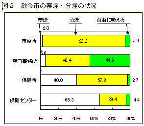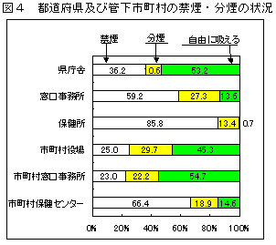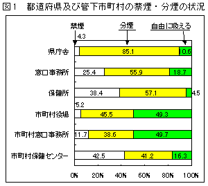 各都道府県(管下市町村)、政令市、特別区の各施設の公共部分及び職場の禁煙・分煙の実施状況を把握することを目的とした。調査対象