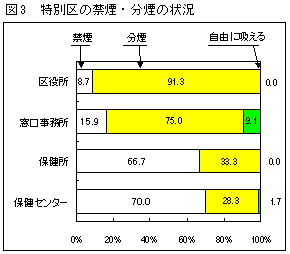 特別区については、全般に「自由に吸える」割合が低くなっている。