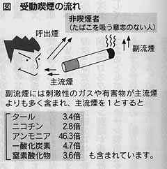 例えば、夫が一日20本以上たばこを吸う場合、たばこを吸わない妻が肺がんで死亡する危険は、夫が吸わない場合に比べて約2倍も高くなります。