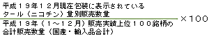 下記の計算式から、ニコチン・タール量別構成比を表しています。