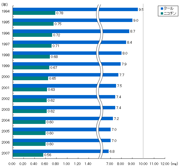 | 年 | ニコチン量(mg) | タール量(mg) |