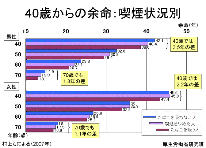 >40歳からの余命:喫煙状況別
