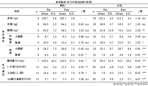 - 身体組成・体力の変化